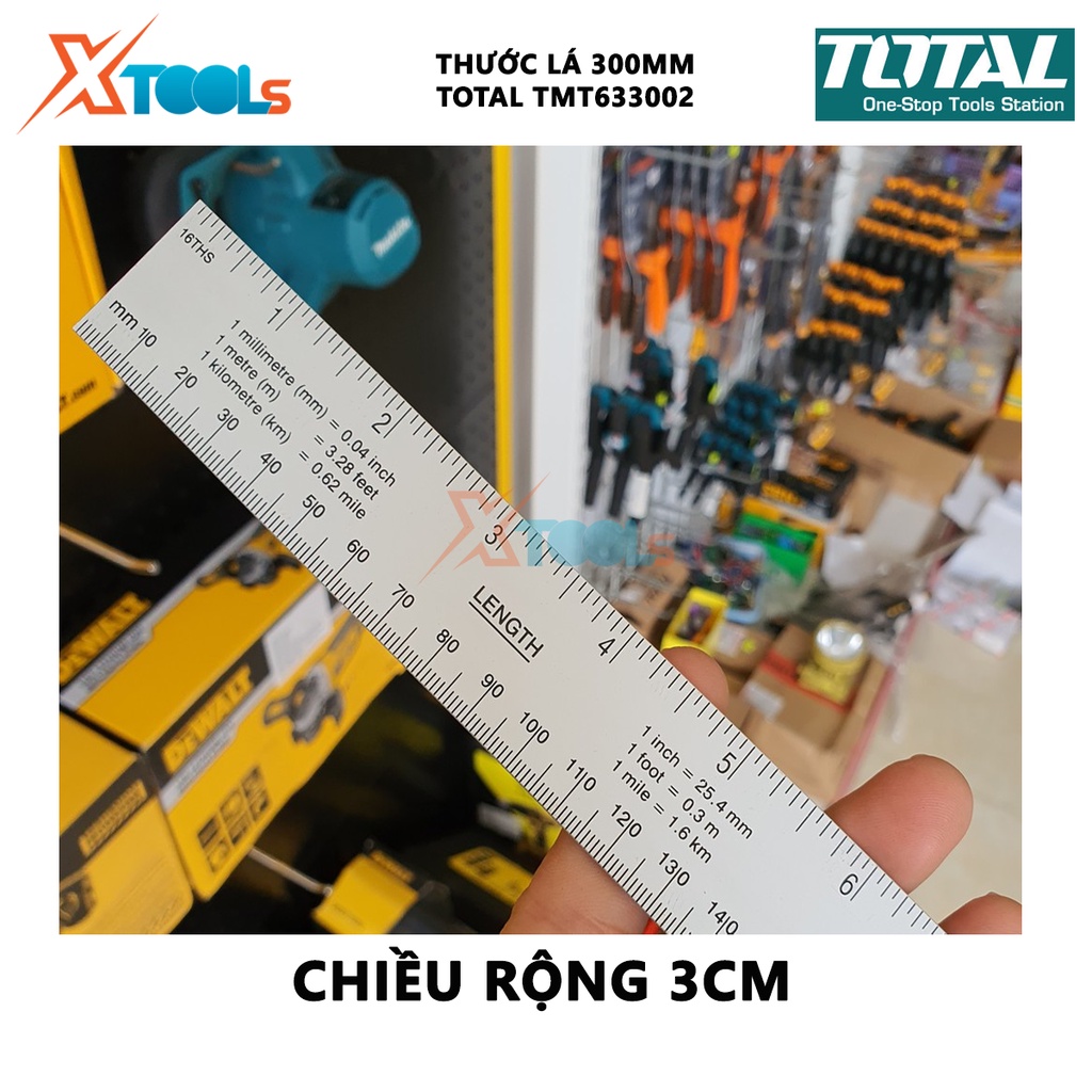 Nhà cửa & Đời sống > Dụng cụ & Thiết bị tiện ích > Dụng cụ > Dụng cụ đo lường || Thước đo TOTAL TMT633002 | thước lá Chiều dài 30cm, Chiều rộng 3cm, Chất liệu nhôm anodized, Tỷ lệ chính xác 0,7mm / m [Còn hàng