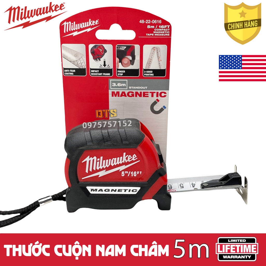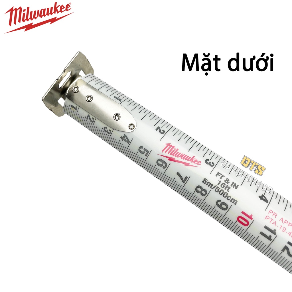 Thước kéo nam châm 5m Milwaukee Mỹ, thước cuộn thép 2 mặt nền trắng công nghiệp độ chính xác tuyệt đối, chống va đậpĐược nhập khẩu và phân phối chính hãng bởi DTS