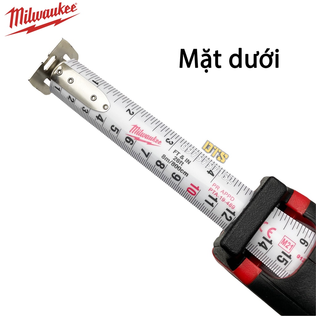 Thước kéo nam châm 8m Milwaukee Mỹ, thước cuộn thép 2 mặt nền trắng công nghiệp độ chính xác tuyệt đối, chống va đậpĐược nhập khẩu và phân phối chính hãng bởi DTS