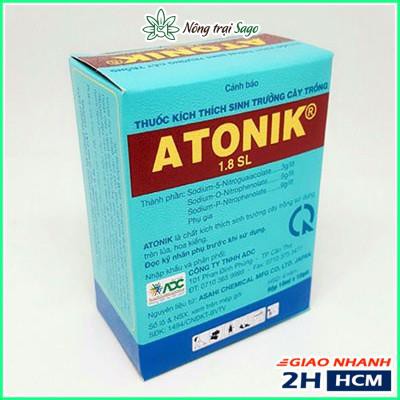 - Atonik là thuốc kích thích sinh trưởng cây trồng thế hệ mới. Cũng như các loại vitamin Atonik làm tăng khả năng sinh trưởng đồng thời giúp cây trồng tránh khỏi những ảnh hưởng xấu do những điều kiện sinh trưởng không thuận lợi gây ra.