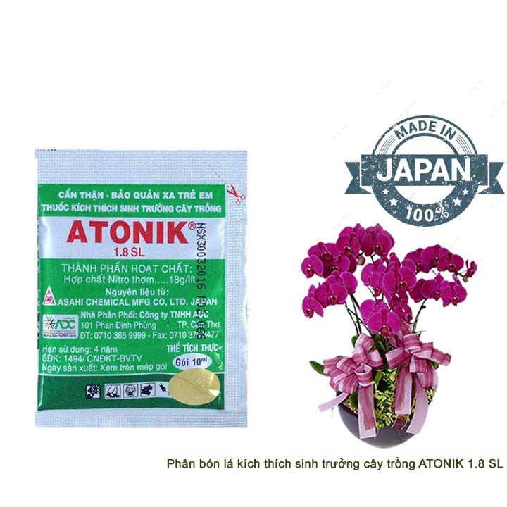 THUỐC KÍCH THÍCH SINH TRƯỞNG CÂY TRỒNG ATONIK 1.8 SL do hãng hóa chất ASAHI Nhật Bản sản xuất.ATONIK là thuốc kích thích sinh trưởng cây trồng thế hệ mới. Cũng như các loại Vitamin, ATONIK làm gia tăng khả năng sinh trưởng đồng thời cũng bảo vệ cây trồng tránh khỏi những ảnh hưởng xấu do điều kiện sinh trưởng không thuận lợi gây ra.