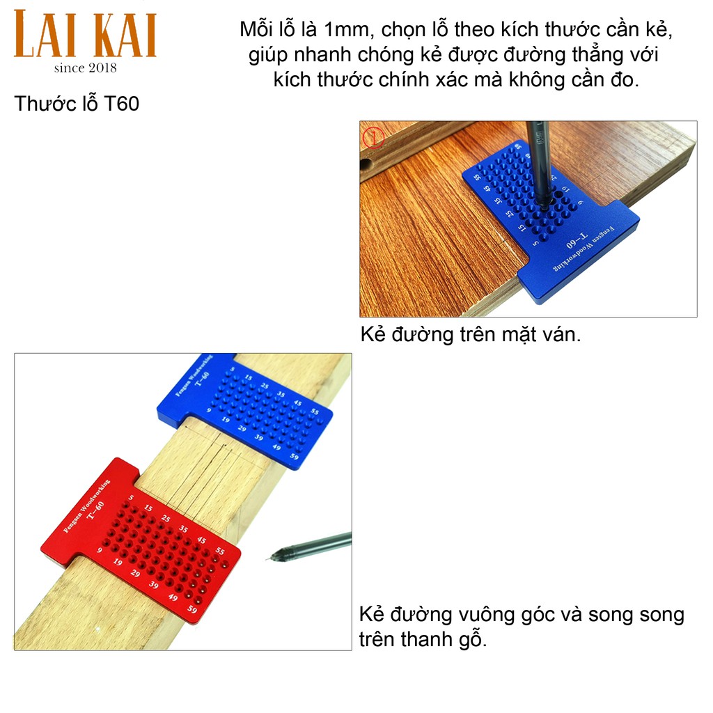 • T60 có các lỗ từ 5mm đến 60mm để kẻ vạch lấy dấu.