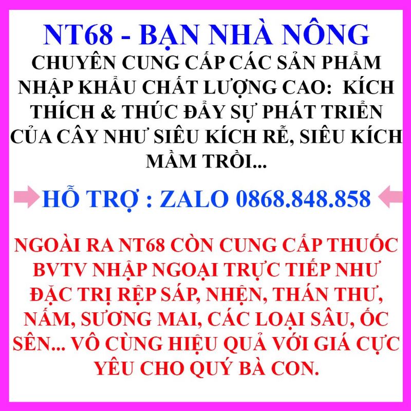 - SẢN PHẨM GỒM CÓ 1 GÓI 25 GRAM PHA VỚI 15-20 LÍT NƯỚC. NT68 CAM KẾT CHỈ PHÂN PHỐI CHUẨN HÀNG TW DATE MỚI THỜI HẠN SỬ DỤNG 3 NĂM.⚡⚡ SỐ LƯỢNG LH: ZALO 0868.849.858 ĐỂ NHẬN GIÁ ĐẸP SỐ LƯỢNG⚡⚡