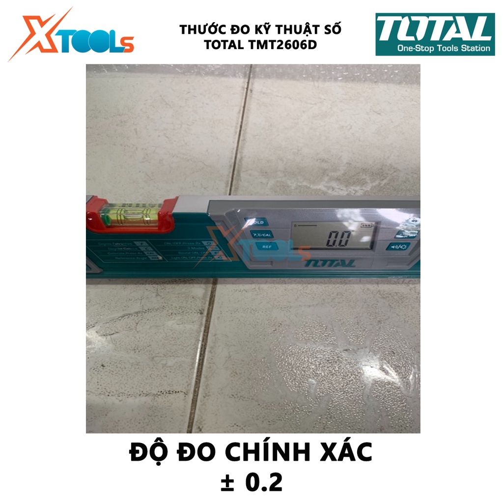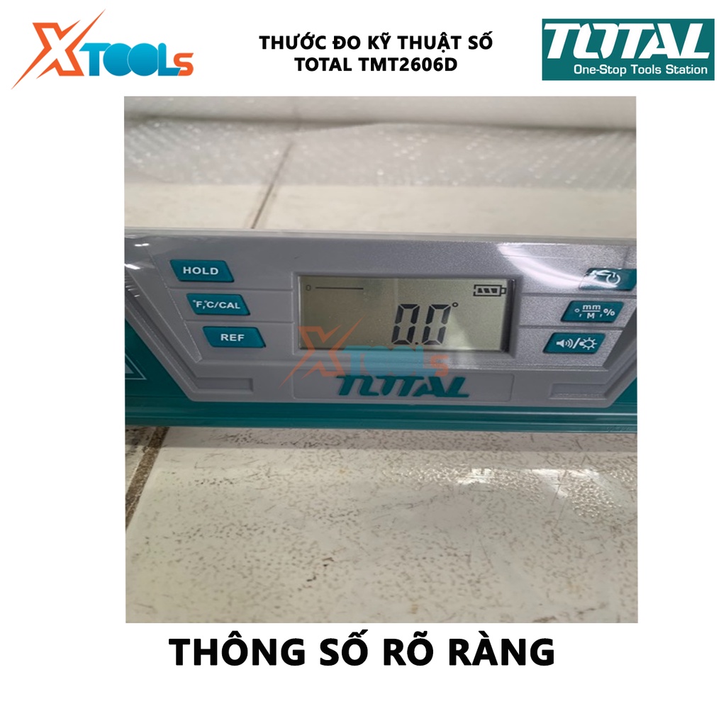 Nhà cửa & Đời sống > Dụng cụ & Thiết bị tiện ích > Dụng cụ > Dụng cụ đo lường || Thước thủy đo kỹ thuật số TOTAL TMT2606D thước thủy điện tử Chiều dài thước đo 60cm, Phạm vi đo 0~360°(4*90°), Độ đo chíCòn hàng