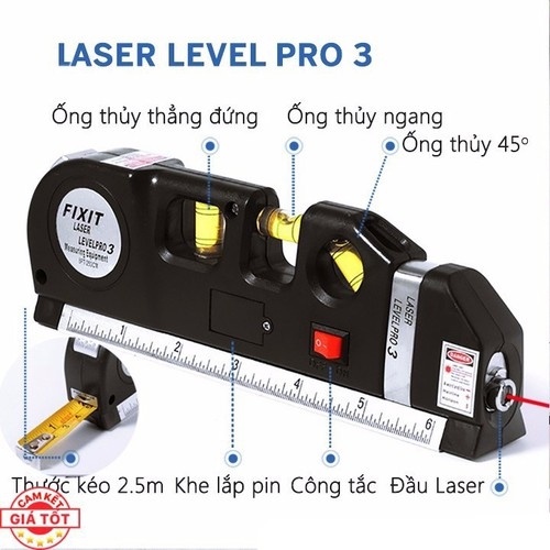 Nhà cửa & Đời sống > Dụng cụ & Thiết bị tiện ích > Dụng cụ > Dụng cụ đo lường || Thước Thủy Nivo Cân Mực Laser Đa Năng F2018 Fixit Laser Levelpro3 2 Tia Dọc Ngang + Tặng Kèm 3 Viên PinCòn hàng