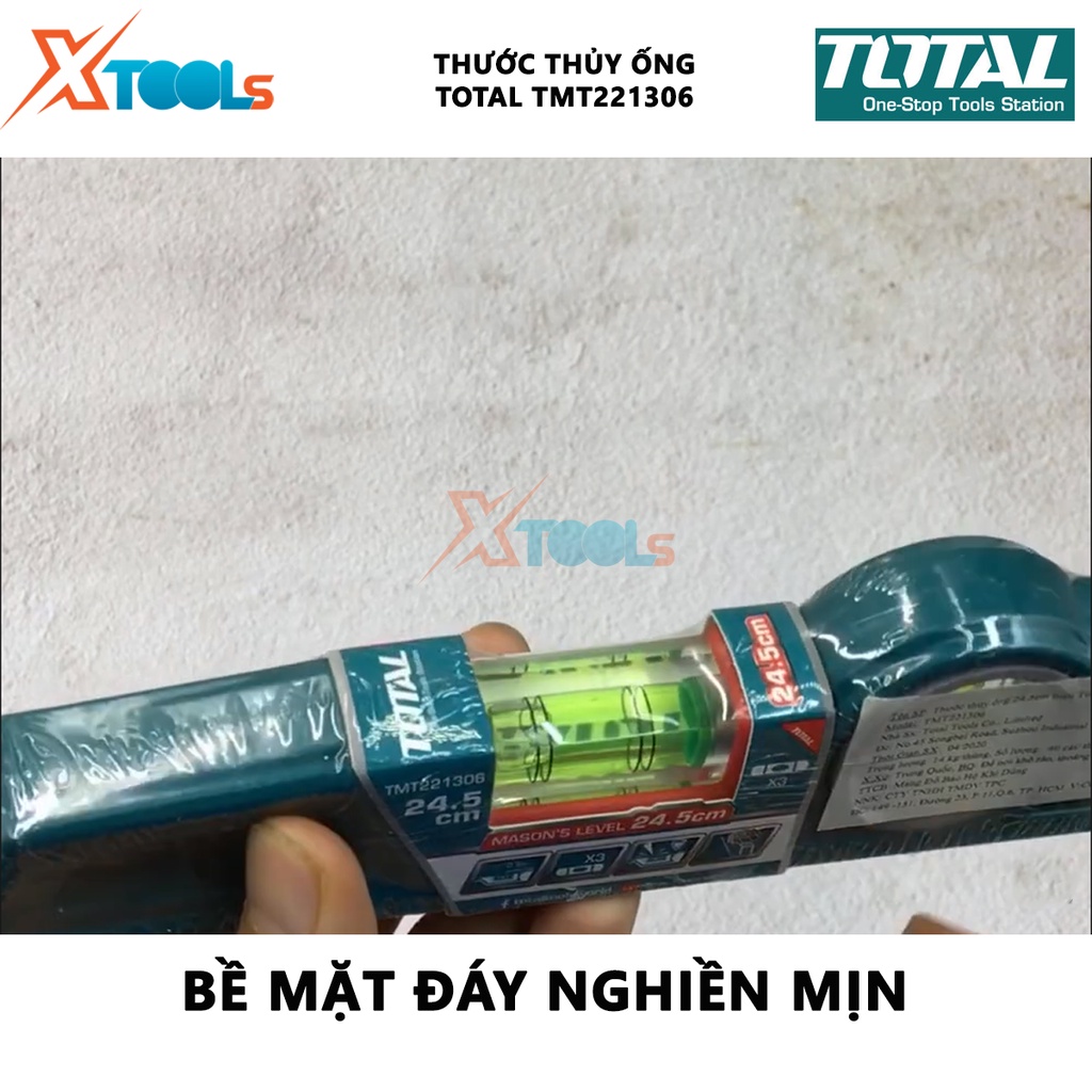 Thước thủy ống TOTAL TMT221306 | thước nivo Chiều dài 24,5cm, Độ chính xác 0,5mm, Bề mặt đáy nghiền mịn, Thân thước bằng