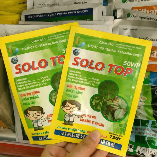 Thuốc trừ bệnh phấn trắng thán thư hoa hồng SOLO TOP 50WPThành phần: kasugamycin 5% + Copper Oxychloride 45