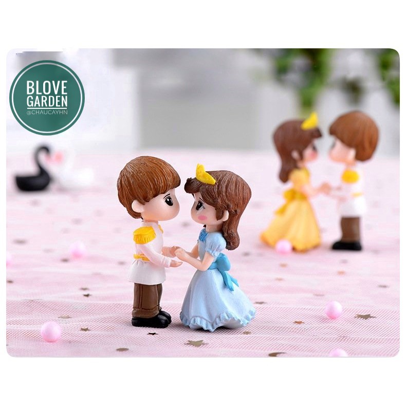 Tiểu cảnh cặp đôi hoàng tử công chúa làm phụ kiện trang trí terrarium, sen đá, xương rồng, nhà mô hình