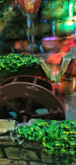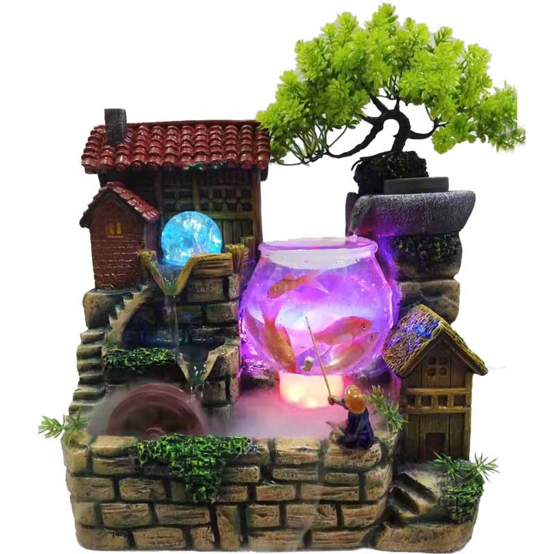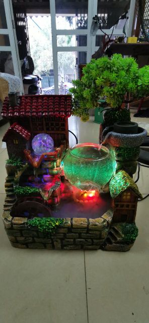Thác nước + cây giả+ cối xay+ đèn Led+ bể cá