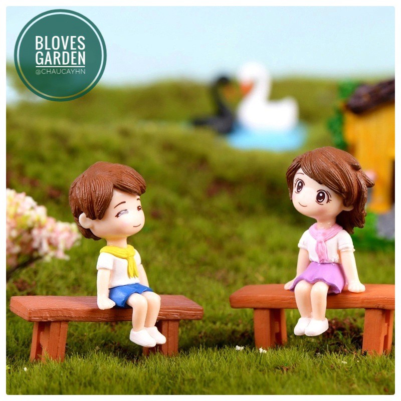 Nhà cửa & Đời sống > Làm vườn > Trang trí vườn || Tiểu cảnh trang trí – cặp đôi ngồi học bài (KÈM GHẾ) làm phụ kiện terrarium, sen đá, xương rồng, nhà mô hình, charm slimCòn hàng