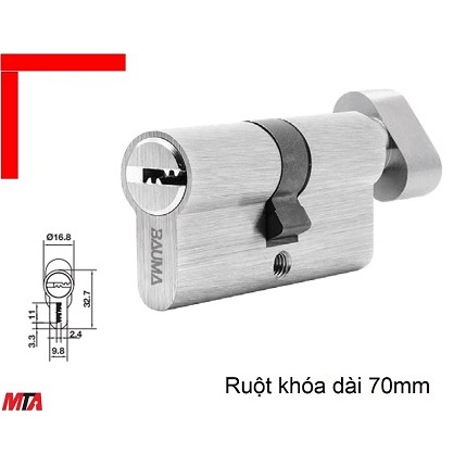 TIM KHÓA BAUMA HAFELE 916.87.823 RUỘT KHÓA ĐẦU VẶN ĐẦU CHÌA DÀI 70MM