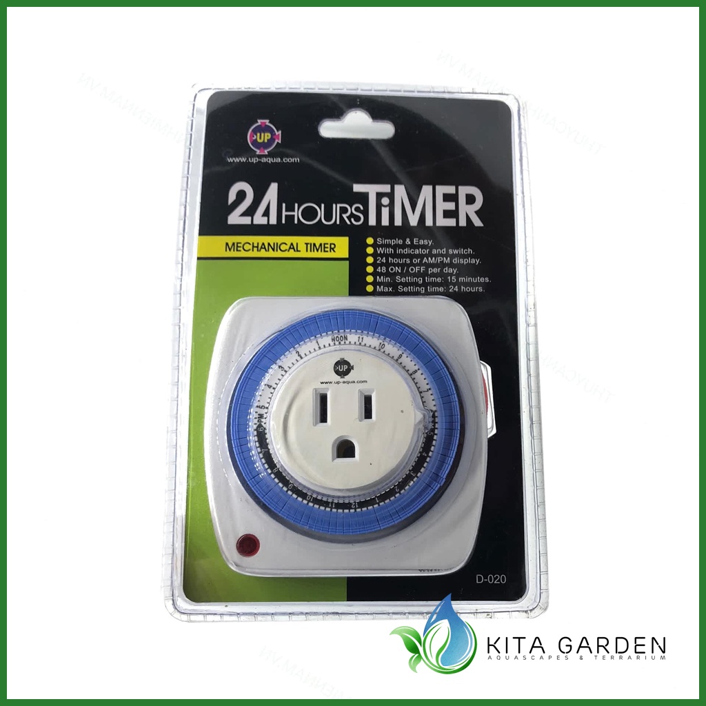 Đồng hồ hẹn giờ 24 Hours Timer Up-Aqua - Hiện có mẫu mã mới là Top-Aqua với tính năng y hệt (chỉ khác nhãn)Là thiết bị chuyên dùng cho hẹn giờ bật tắt tự động các thiết bị điện trong trồng rau thủy canh và nuôi cá cảnh thủy sinh... như bật tắt máy bơm, bật tắt đèn ... theo thời gian đã cài đặt sẵn
