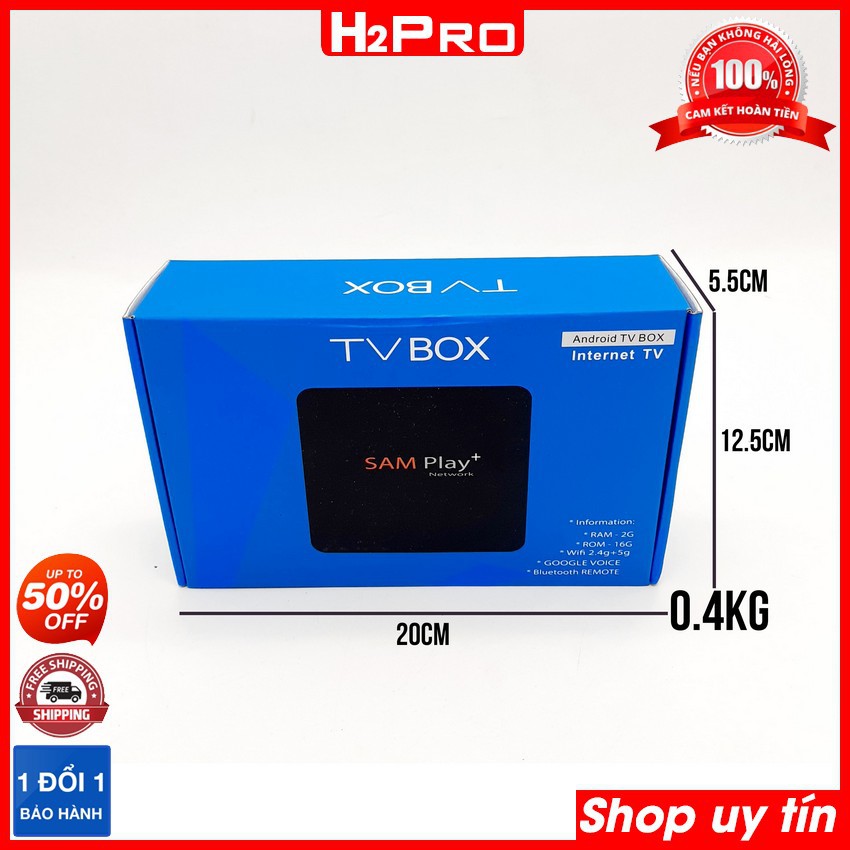 Tivi box android SAMPLAY+ H2Pro 2GB+16GB chính hãng, chạy mượt, android tivi box giá rẻ có tìm kiếm giọng nói