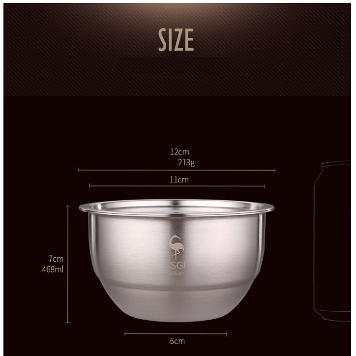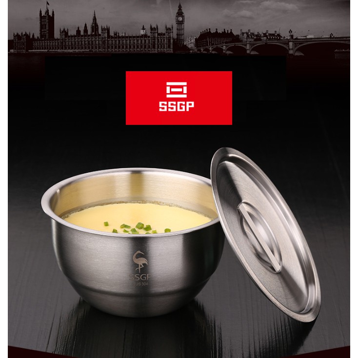 Tô inox 304 có nắp - SSGP - 12x7cm ( Đáy : 6cm ) 468ml 213g