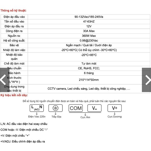 Thông số kỹ thuật #nguồntổông ::Input : 110 - 120 VAC 3.0A