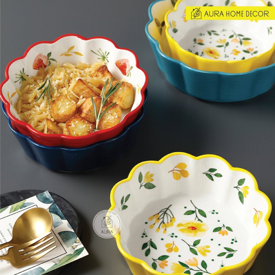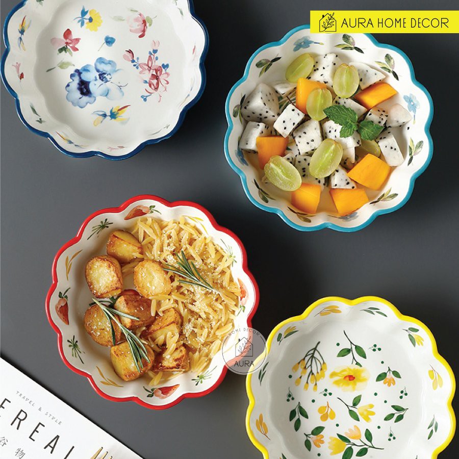 - Bát gốm sứ được thiết kế hình hoa với nhiều họa tiết vẽ trên bát siêu đẹp,nghệ thuật.Men bát dày mịn và bóng.