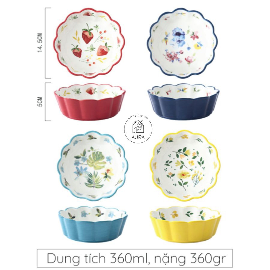 ❌ ❌ ❌ GIÁ SỐC, MUA NGAY. GIÁ CHỈ ÁP DỤNG TRONG VÒNG 24H❌ ❌ ❌Tô sứ, bát sứ dáng tròn 14.5cm - dung tích 400ml họa tiết nhiệt đới nhiều màu sắc.