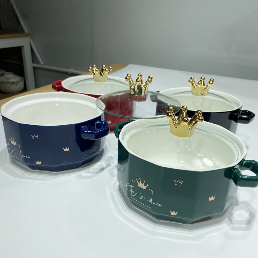 Nhà cửa & Đời sống > Bộ đồ bàn ăn > Tô || Tô sứ có nắp - tô sứ ăn mì nắp kính hình vương miện cao cấp cực sang chảnhCòn hàng