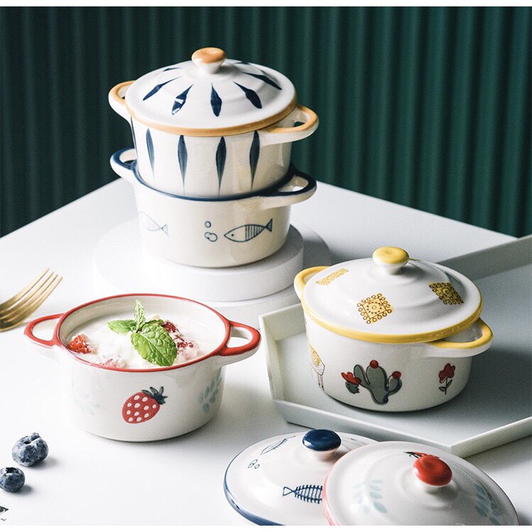 Tô sứ mini có nắp chưng yến, hũ ăn dặm, ăn súp siêu đẹp