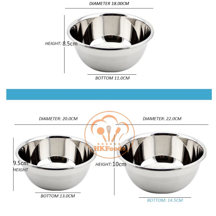 Trong làm bánh, #trộn bột là công đoạn khá kì công và mất nhiều sức và 1 dụng cụ làm bánh để hỗ trợ các chị em tốt nhất là đó là #báttrộnbột #inox. Trung bình mỗi thợ làm bánh đều sắm cho mình ít nhất 2 chiếc bát trộn. Một chiếc bát sâu lòng để đánh kem, đánh trứng và một chiếc bát miệng thấp thành loe để trộn bột.Kích thước đường kính 22cm, đáy 12cm, cao 10cm