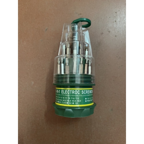 Sản phẩm gồm 31 đầu vít với đầy đủ các dạng đầu và kích cỡ: dẹt, tam giác, lục giácTay cầm được làm bằng nhựa dẻo, có mấu chống trơn