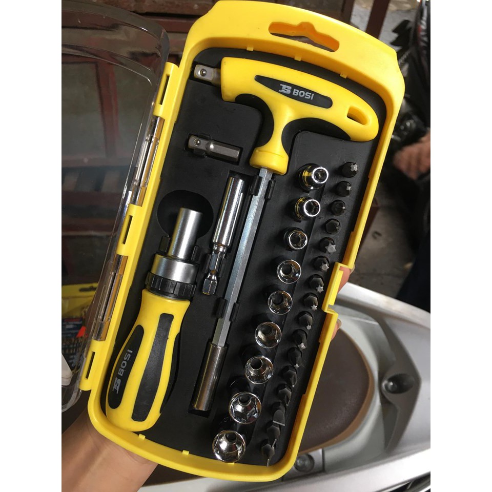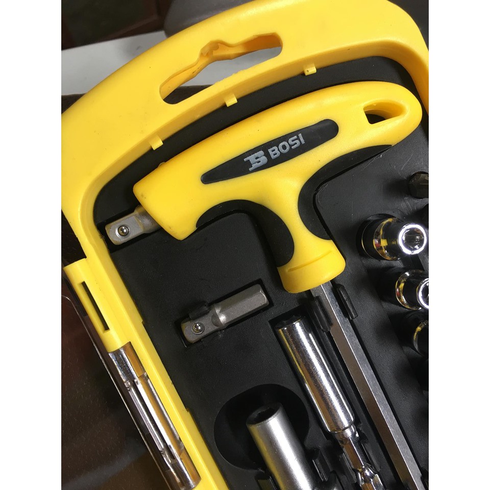 Bộ tô vít đa năng 41 chi tiết Bosi BS463041 được làm bằng chất liệu thép không gỉ, tay cầm được bọc 1 lớp nhựa dẻo với thiết kế chống trượt nên rất êm tay và an toàn.Bộ sp thích hợp để dùng từ sửa chữa các đồ điện tử trong gia đình, các máy vi tính, laptop, điện thoại di động... đến dùng cho những thợ sửa chữa điện máy