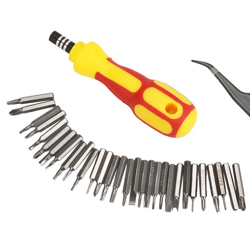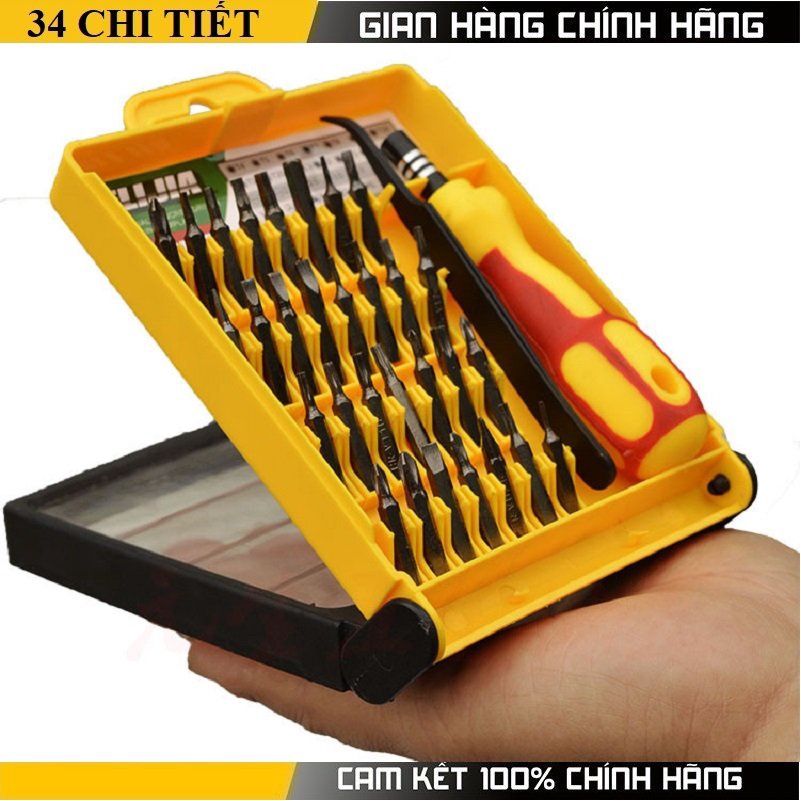 - Bộ tô vít 34 món sửa điện thoại- Bộ tô vít đa năng 34 in1 mang lại cho bạn nhiều tiện lợi khi sửa chữa máy móc hay các thiết bị điện tử cỡ nhỏ trong gia đình. Bộ tua vít với đầu tua vít được làm từ chất liệu thép không gỉ nên rất bền chắc. Sản phẩm có nhiều kiểu đầu vít khác nhau như: đầu dẹt, tam giác, lục giác, 3 cạnh, 4 cạnh, 5 cạnh và 6 cạnh, mỗi dạng đều có đủ các cỡ từ lớn đến nhỏ nên rất dễ dàng cho bạn trong việc sửa chữa đồ đạc.