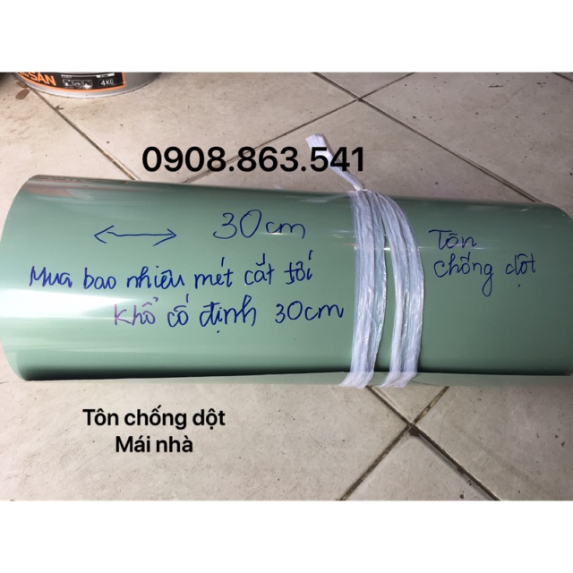 Thông tin sản phẩmTôn xanh khổ 30cm ,được Sơn 1 lớp màu xanh ,chống rỉ sét,dùng để dán lên mé sát mái nhà nọ và nhà kia hạn chế tình trạng nước mưa to rò rỉ vào nhà.