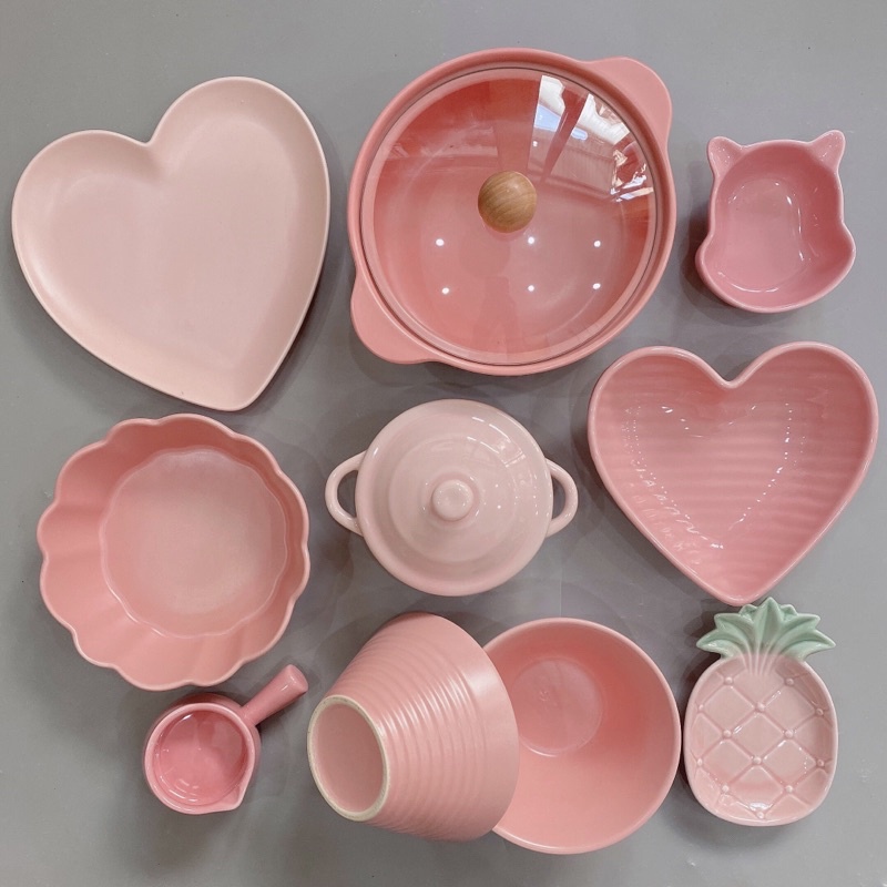 Tổng hợp mẫu màu Hồng Chén Sứ Bát Ăn Cơm Bộ Bát Đĩa Decor Chén Dĩa Sứ Mầu Hồng Dễ Thương Cute Cao Cấp