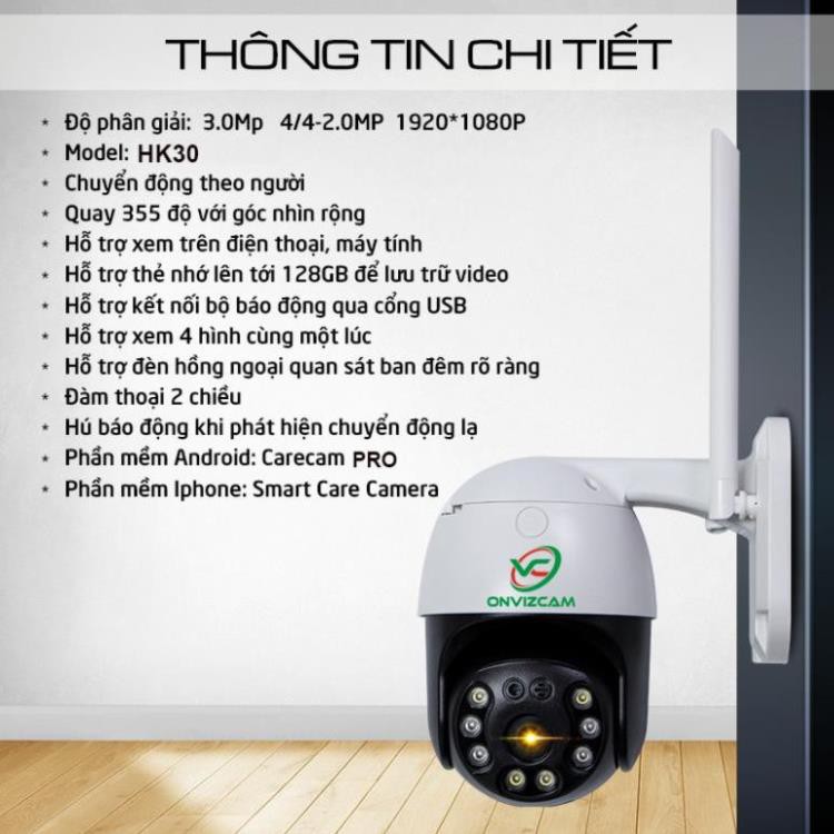 Giới thiệu [TỔNG KHO PHÂN PHỐI]Camera không dây ONVIZCAM HK30 PTZ ngoài trời ban đêm có màu