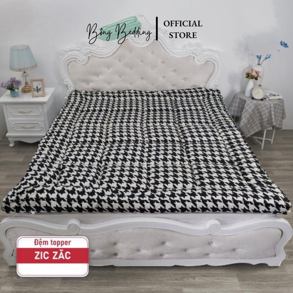 🍎Topper thiết kế ô vuông và có vách ngăn tạo độ phồng, độ êm. Đặc biệt ngăn không cho bông bị dồn, làm bông trải đều tất cả trên bề mặt