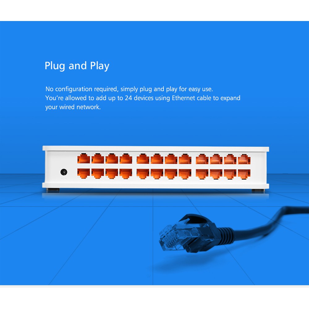 Với SW24D bạn chỉ cần cắm và chạy mà không cần phải cấu hình. Bạn có thể kết nối thêm 24 thiết bị sử dụng Ethernet để mở rộng mạng có dây trong không gian nhà bạn.
