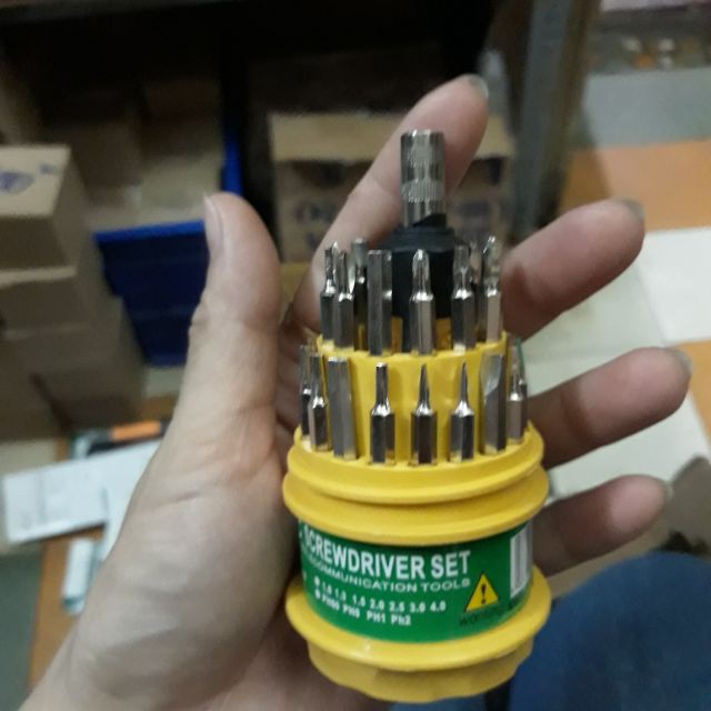 Bộ tua vít đa năng mang lại cho bạn nhiều tiện lợi khi sửa chữa máy móc hay các thiết bị điện tử cỡ nhỏ trong gia đình............ Bộ sản phẩm gồm 31 đầu tua với nhiều kiểu dáng và kích cỡ như dẹt, tam giác, lục giác, hay các đầu từ 3 đến 6 cạnh để bạn thoải mái sử dụng.