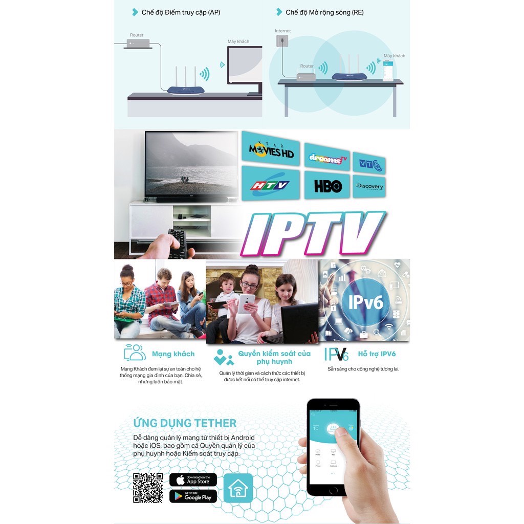 Hỗ trợ 3 chế độ: Router, Mở rộng sóng (RE) và Điểm Truy Cập (AP)