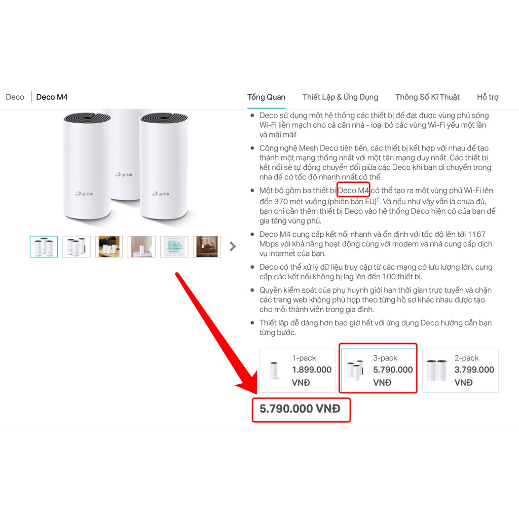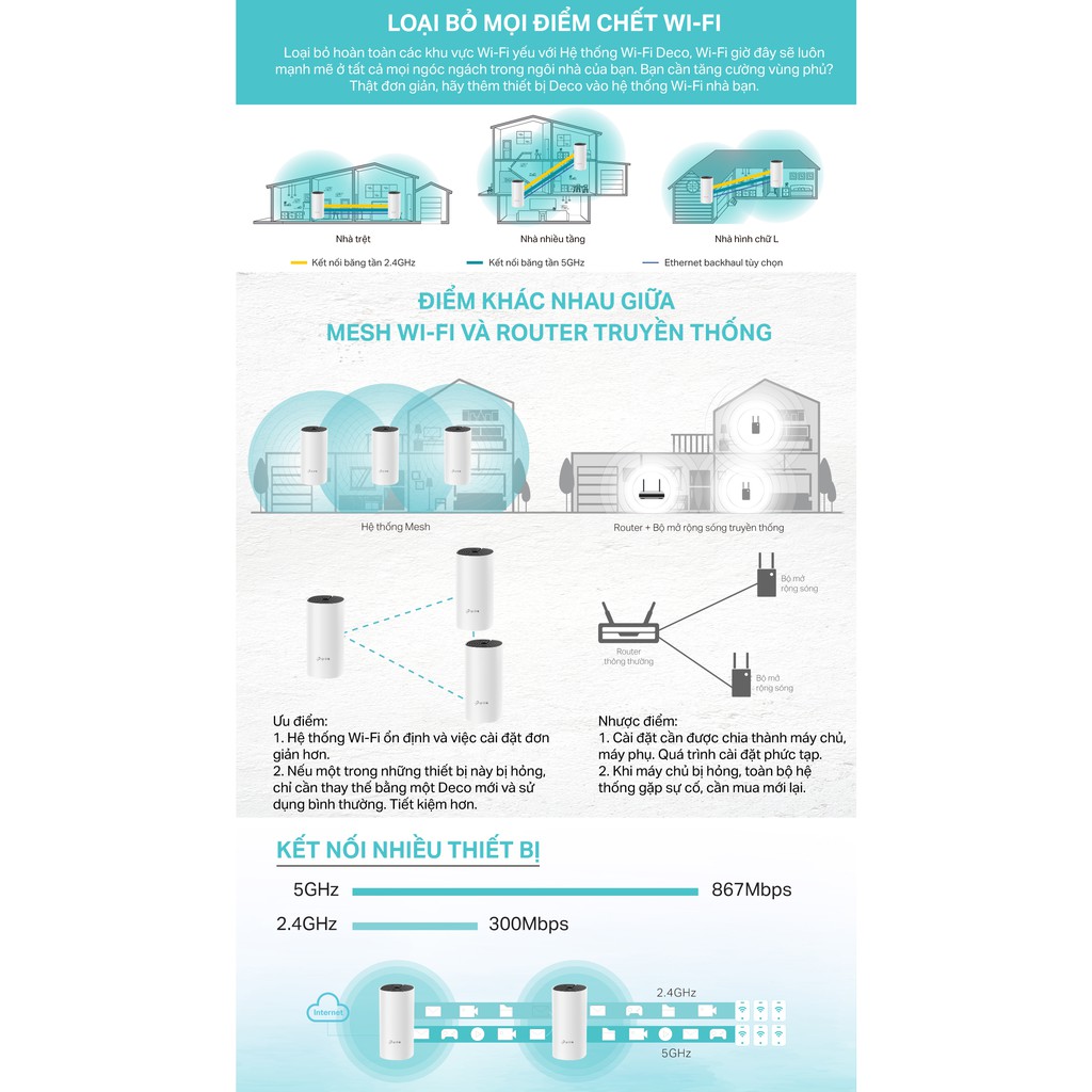 Máy tính & Laptop > Thiết Bị Mạng > Bộ Phát Wifi || TP-Link AC1200 Hệ thống Wifi Mesh cho Gia đình cho độ phủ wifi tuyệt vời - Deco M4(3-pack)/E4(3-pack)- Hàng Chính HãngCòn hàng