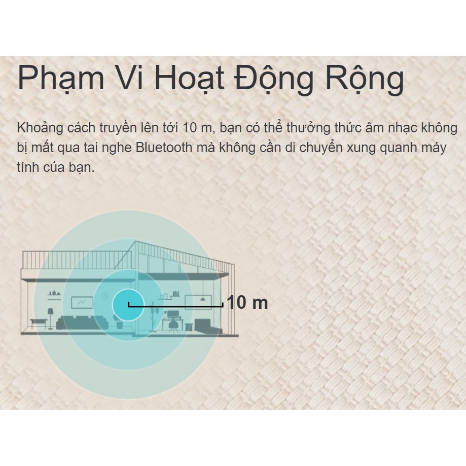Khoảng cách truyền lên tới 10 m, bạn có thể thưởng thức âm nhạc không bị mất qua tai nghe Bluetooth mà không cần di chuyển xung quanh máy tính của bạn.