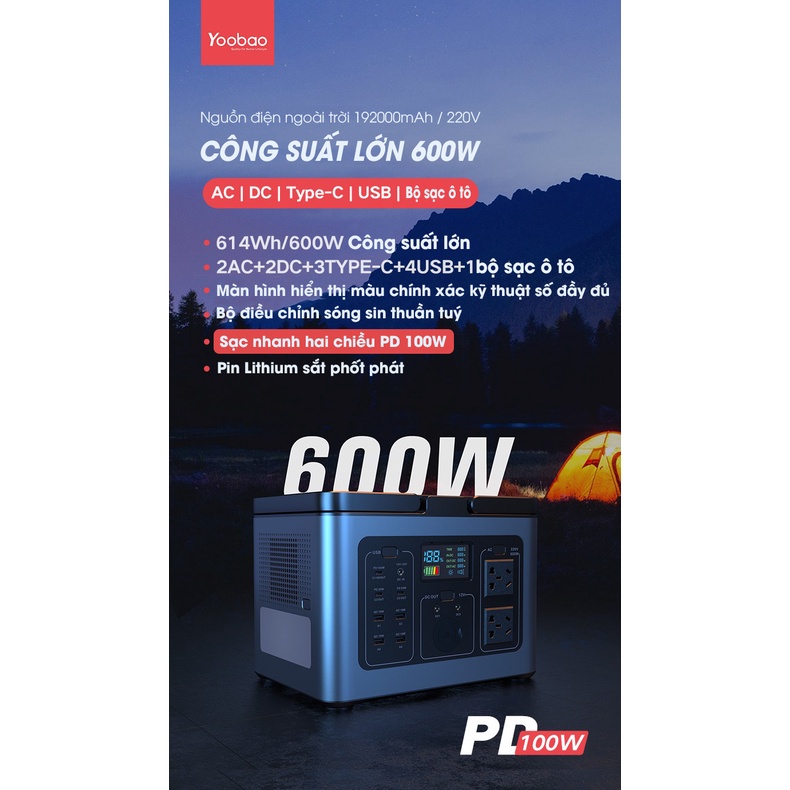 Điện Thoại & Phụ Kiện > Phụ kiện > Sạc dự phòng & Pin > Sạc dự phòng || Trạm Sạc Dự Phòng Di Động Khẩn Cấp Yoobao 192000mAh, Công Suất Lớn 600W/220V Sạc Nhiều Thiết Bị Cùng LúcCòn hàng