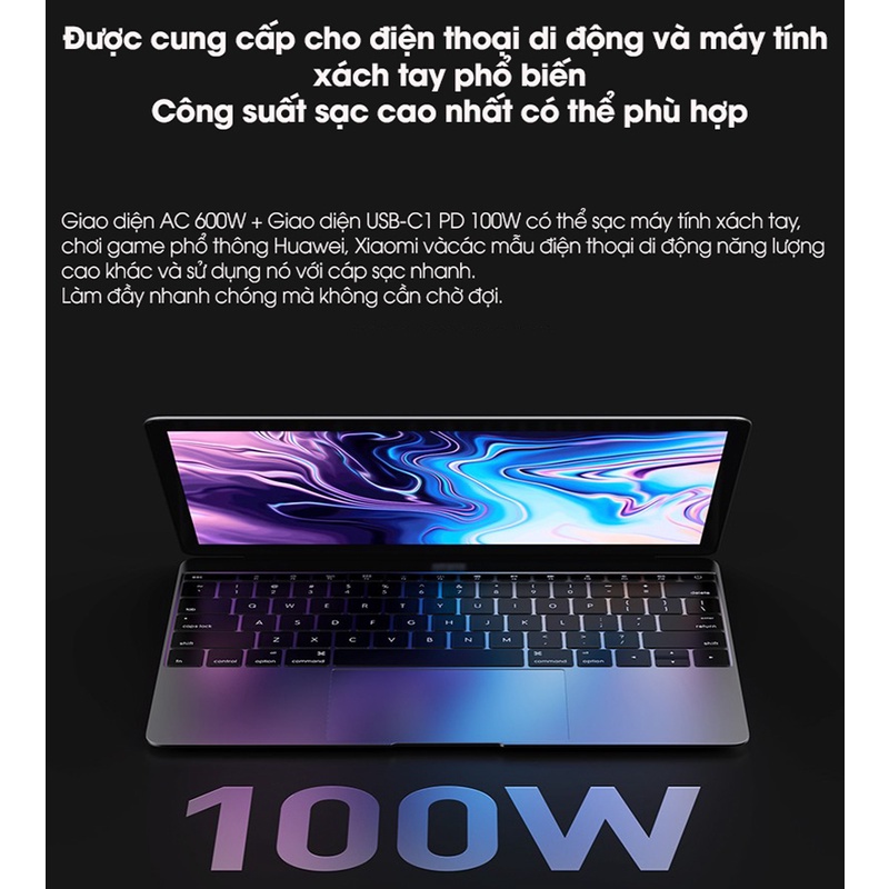Sạc nhanh hai chiều: Hỗ trợ sạc nhanh hai chiều PD 100W