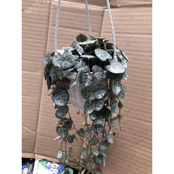 Nhà cửa & Đời sống > Làm vườn > Cây cảnh || [ TRANG TRÍ ] MỘT CHIẾC CEROPEGIA WOODII ( Strings Of Heart - Chuỗi Tim Cẩm Thạch ) Cây Kèm Chậu, Móc Treo Như Ảnh ẹ ❣️Còn hàng