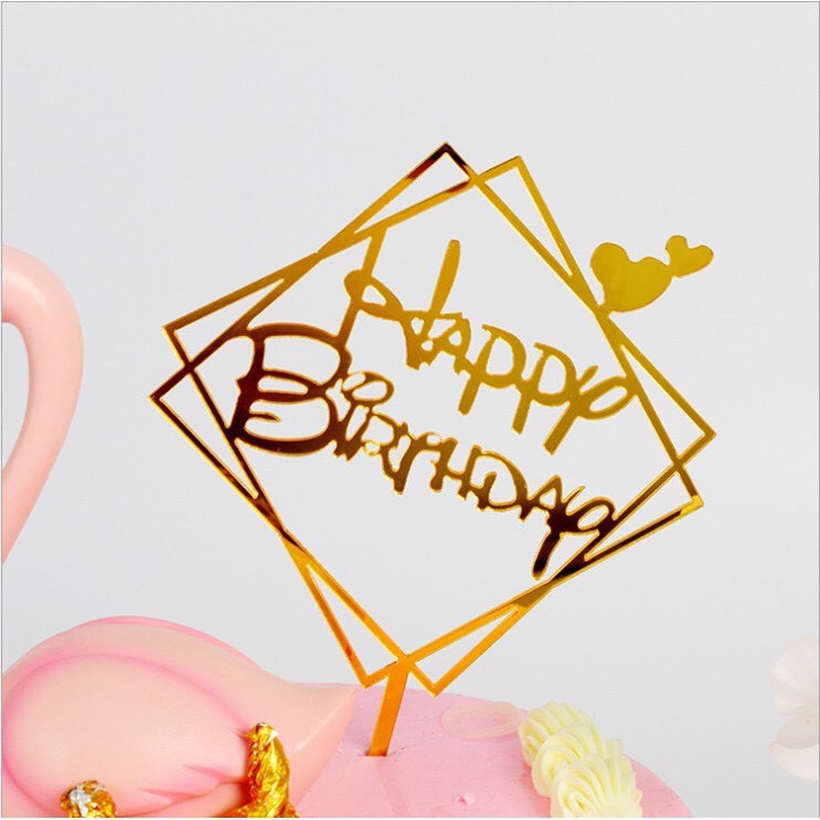 - Meka Happy Birthda trang trí bánh kem được làm bằng nhựa tráng gương cao cấp an toàn khi sử dụng