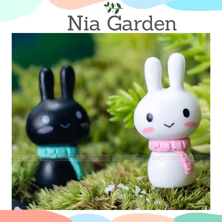 Trang trí tiểu cảnh mini vườn chậu cây mô hình chú thỏ trắng đen quàng khăn Nia Garden N5