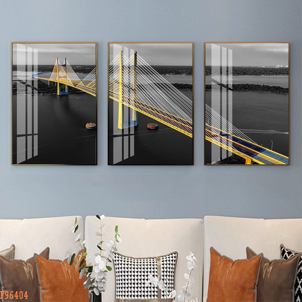 Tranh Cầu Cổng Vàng Treo Tường - Bộ 3 Bức Canvas Phong Cảnh Đẹp