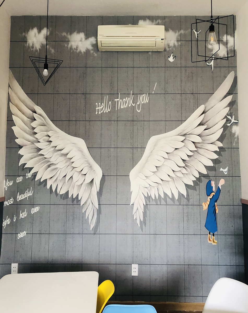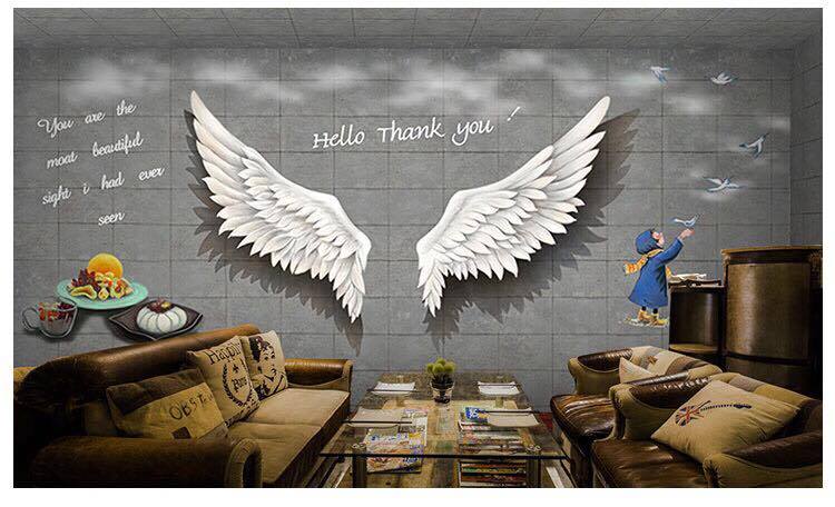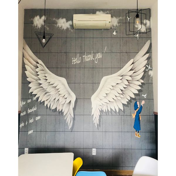 Với hình ảnh độc đáo, tranh dán tường 3d đôi cánh thiên thần giúp không gian của quán của bạn trở nên lôi cuốn, sinh động, là nơi để chụp hình thật ấn tượng
