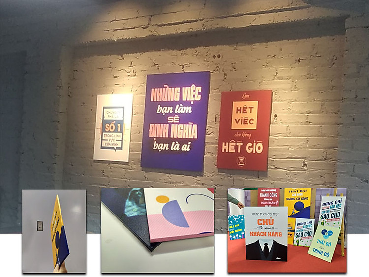 Trong những không gian cần có sự trang trọng hơn thì tranh slogan được đóng khung là một trong các lựa chọn tối ưu.