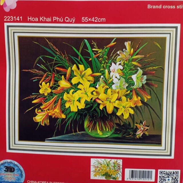 Giới thiệu Tranh thêu chữ thập Bình Hoa Khoe Sắc 223141 (55x42) chưa thêu