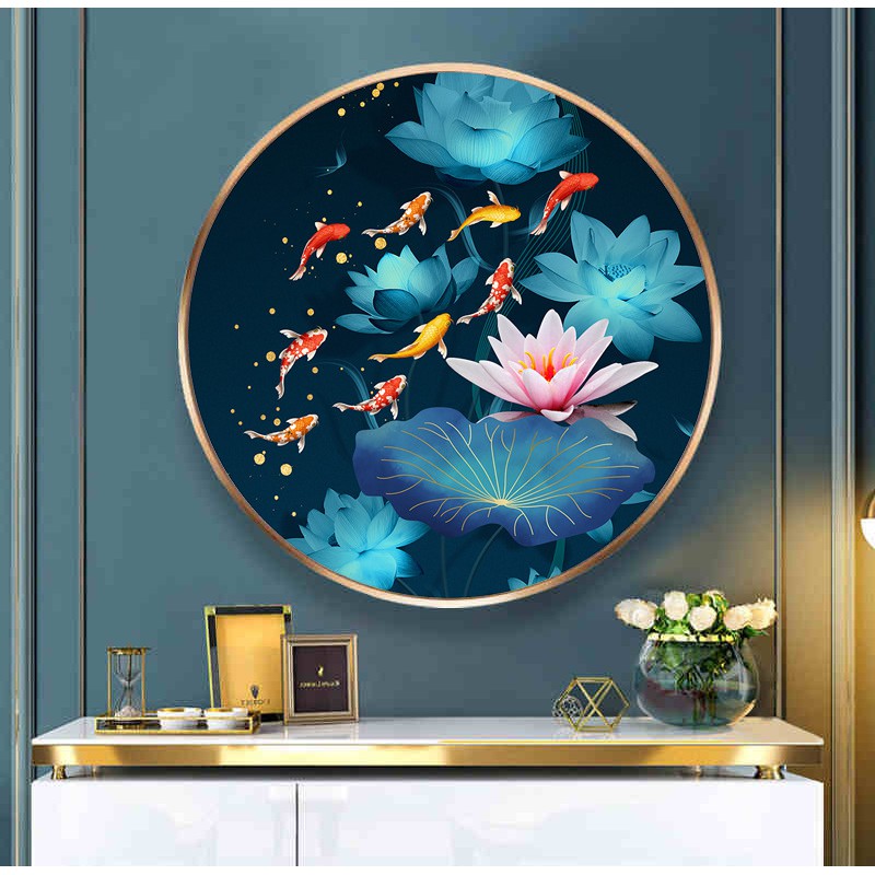 Sở thích & Sưu tầm > Dụng Cụ May Vá || Tranh thêu chữ thập chỉ lụa cửu ngư quần hội hoa sen DX1166Còn hàng