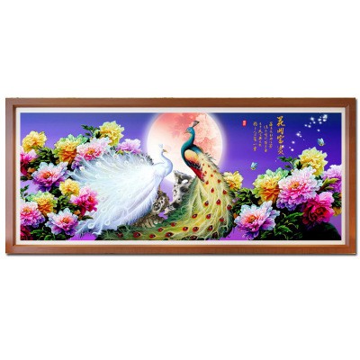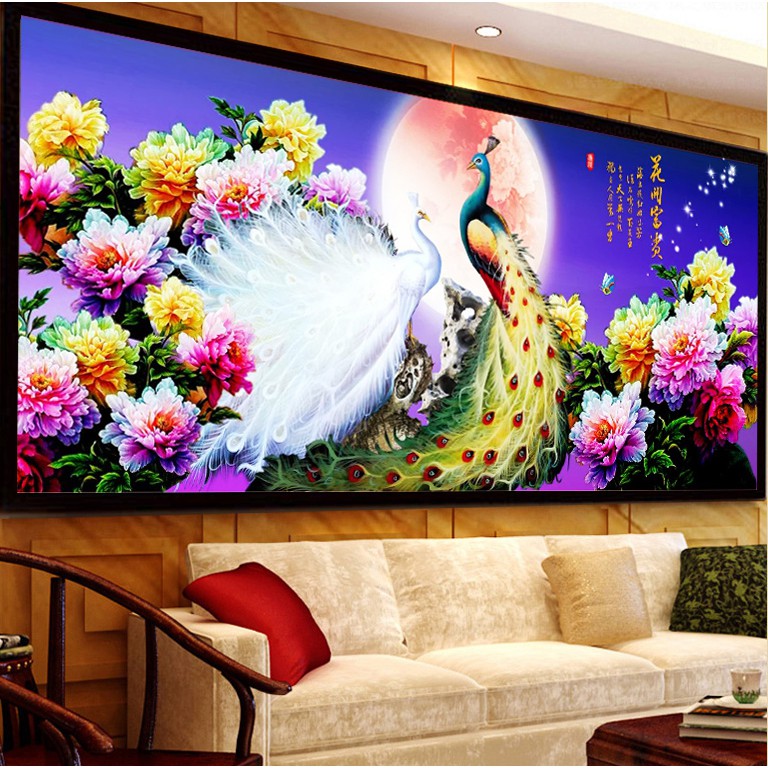 Sở thích & Sưu tầm > Dụng Cụ May Vá || Tranh thêu chữ thập chỉ lụa chim công khổ lớn 195x83cm HH0771Còn hàng