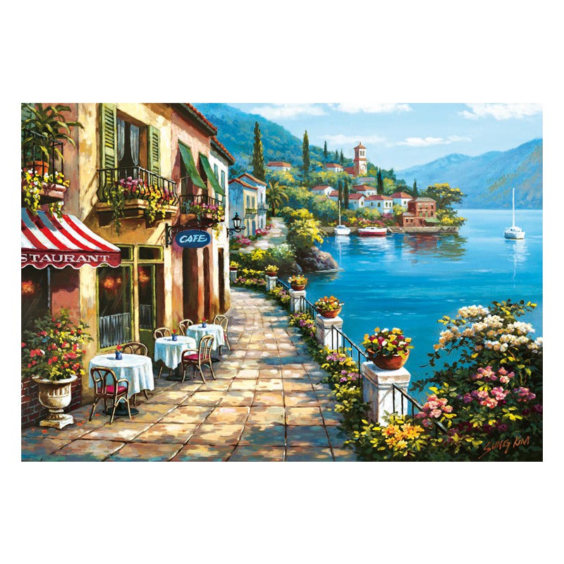 Tranh thêu chữ thập chỉ lụa phong cảnh ngôi nhà ven biển MXE005>>>LƯU Ý: có loại chỉ thường và chỉ lụa. Quý khách vui lòng chọn lựa chính xác.