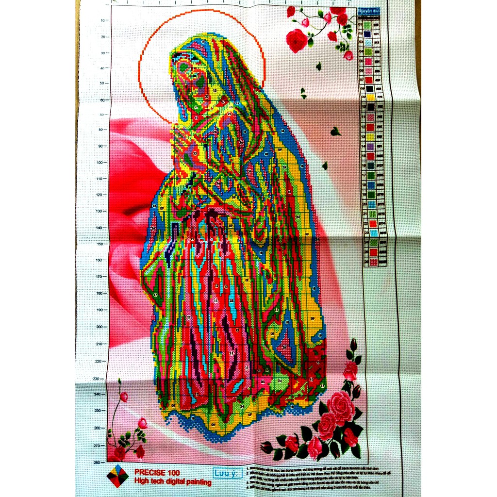 Tranh thêu chữ thập Mẹ Maria 8078 - tự thêu