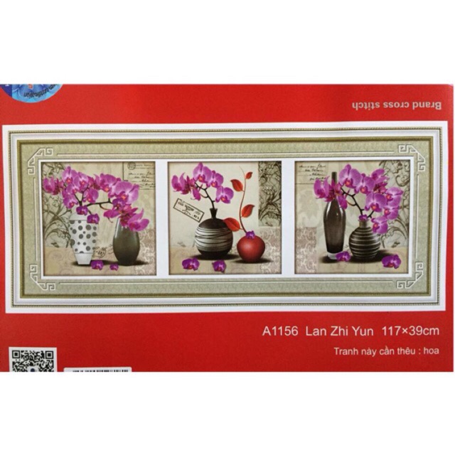 Giới thiệu Tranh thêu hoa lan ghép A1156 (117x39cm) chưa thêu